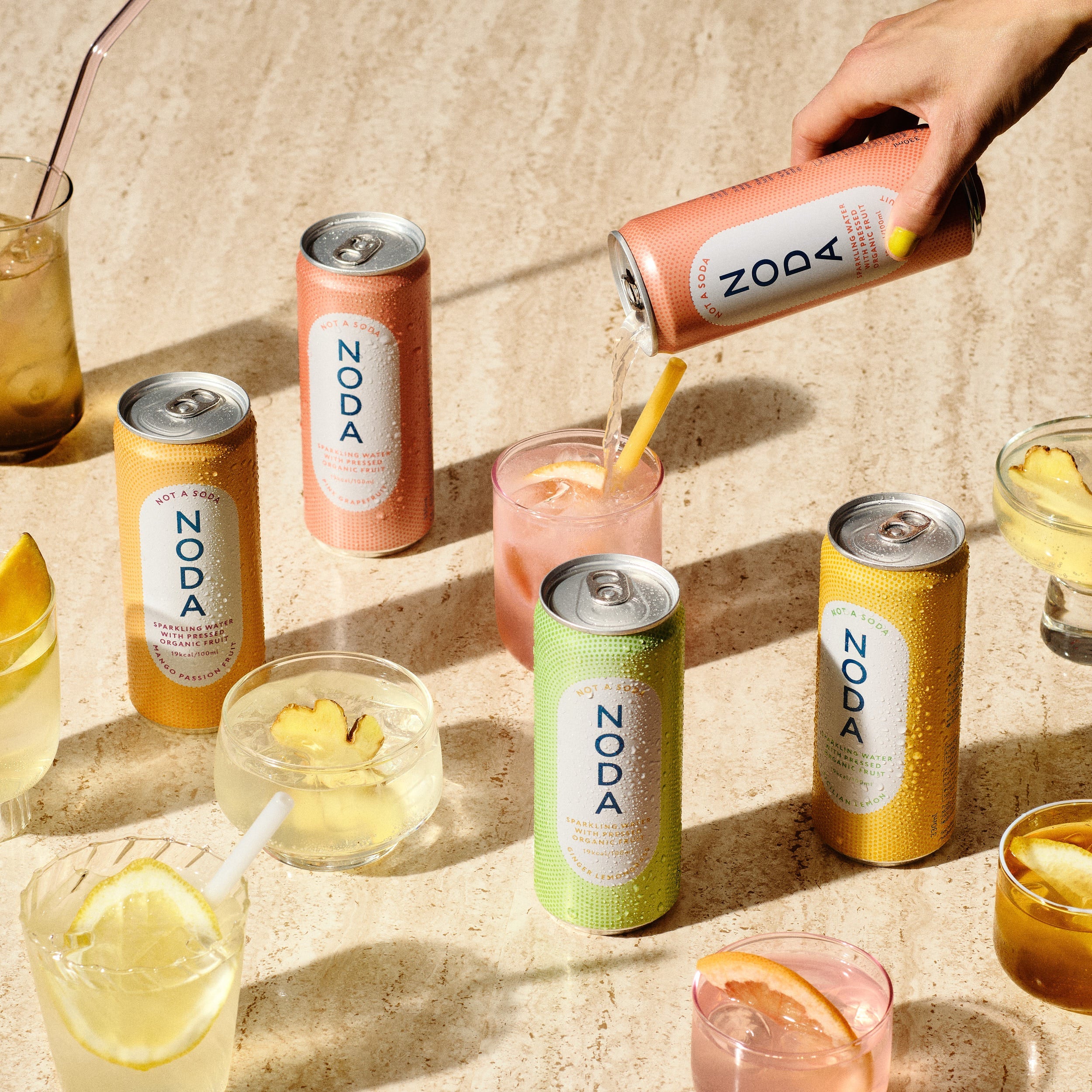 For Mette og Norman manglede der en læskedrik uden masser af sukker eller kunstige sødemidler, som stadig giver en sød og tilfredsstillende smag. Derfor kom de med deres alternativ til sodavand i form af NODA – Not A Soda. I dette alternativ finder man vand med bobler og 30% presset økologisk frugt, som med sine naturlige ingredienser og lave antal kalorier giver en lækker og forfriskende oplevelse.